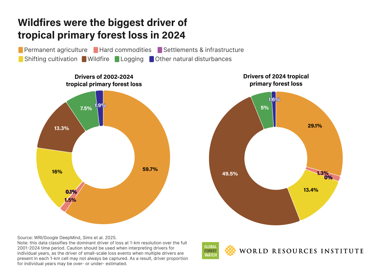 Globally, 2024 saw a sharp increase in wildfires, with some of the largest impacts outside of South America occurring in boreal and tropical rainforests of places like Canada and Siberia. Fire damage now accounts for nearly half of the total tropical forest loss worldwide, a record shift from past years where clearing for agriculture was the top threat. These wildfires, often started by people to clear land, are spreading further because of hotter, drier weather linked to global climate change. As a result, the planet lost the equivalent of 18 soccer fields of forest every minute, and the goals set by international agreements to halt deforestation by 2030 are far from being met.