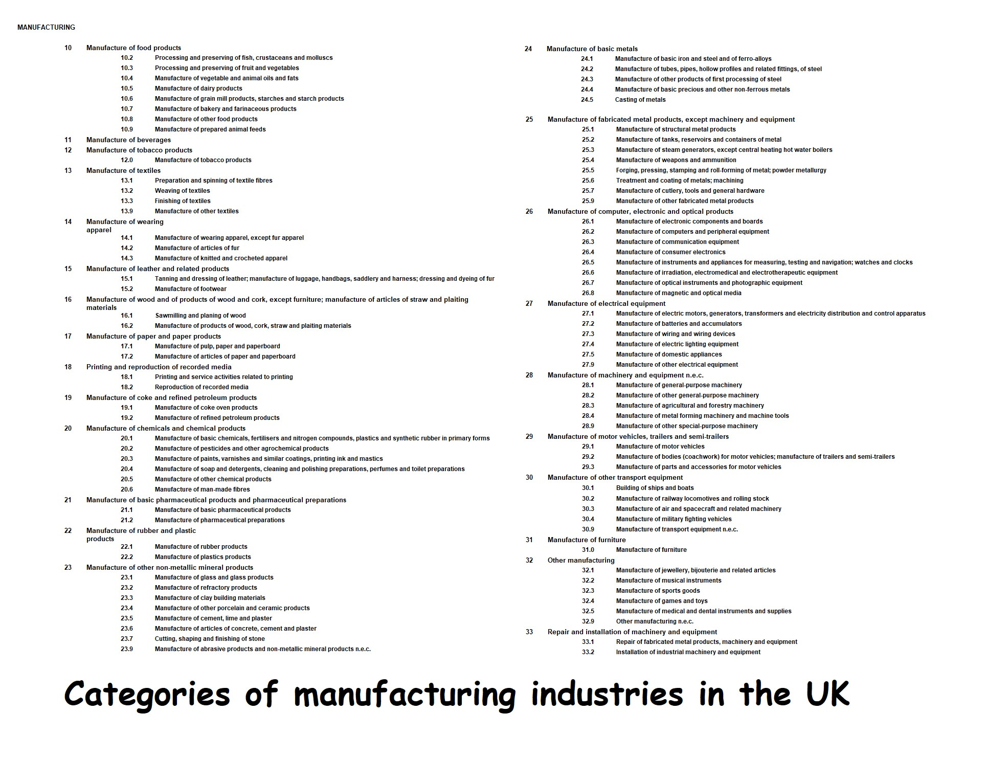 Commonly Recognised Sectors: