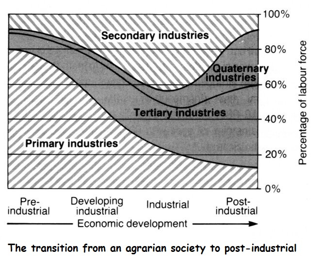 Examine the roles played by each of the five main types of industry in the economic development of a country.